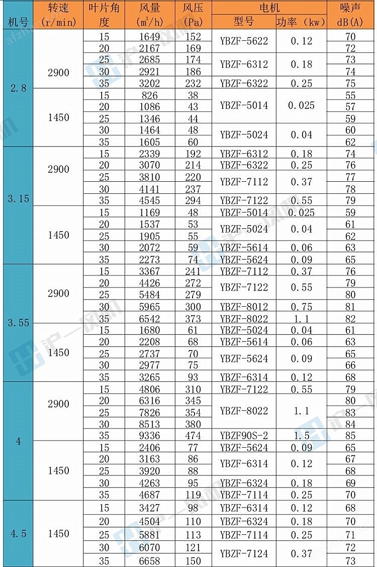 2.8/3.15/3.55/4/4.5/5/5.6/6.3/7.1/8/9/10/11.2#风量800-70000m3/h,功率0.04-7.5KW,能满足绝大部分客户参数