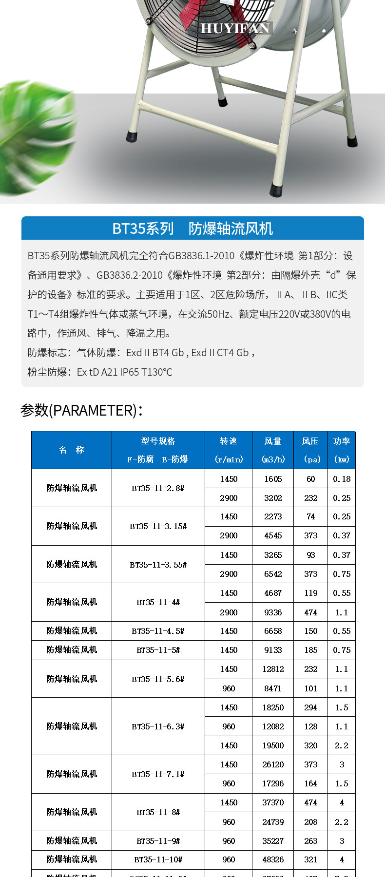 简要描述:BT35-11-3.15防爆轴流风机。BT35-11-3.55防爆轴流风机,BT35-11-4防爆轴流风机,BT35-11-4.5防爆轴流风机,BT35-11-5防爆轴流风机,防爆轴流风机BT35-11-5.6,BT35-11-6.3防爆轴流风机,BT35-11-7.1防爆轴流风机,